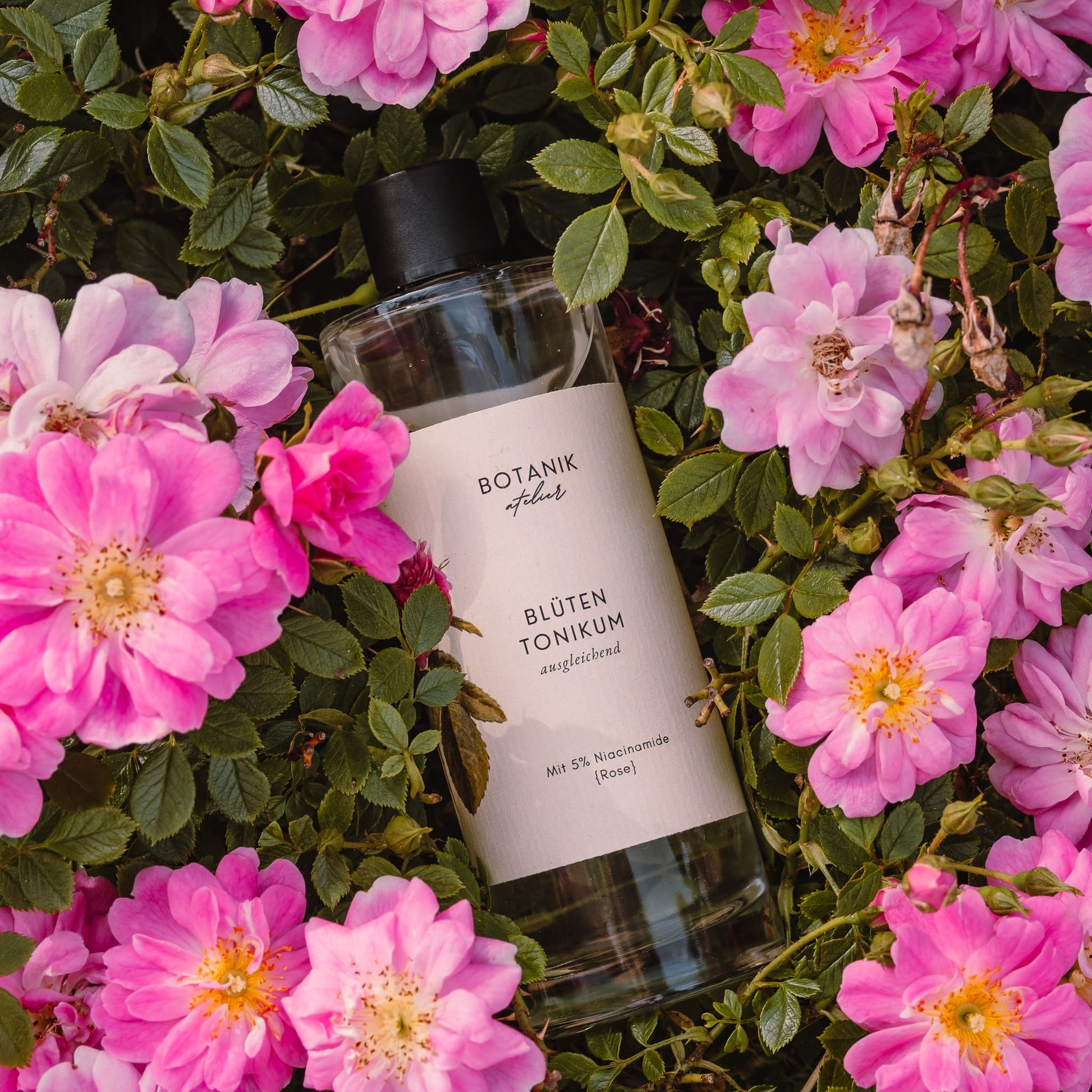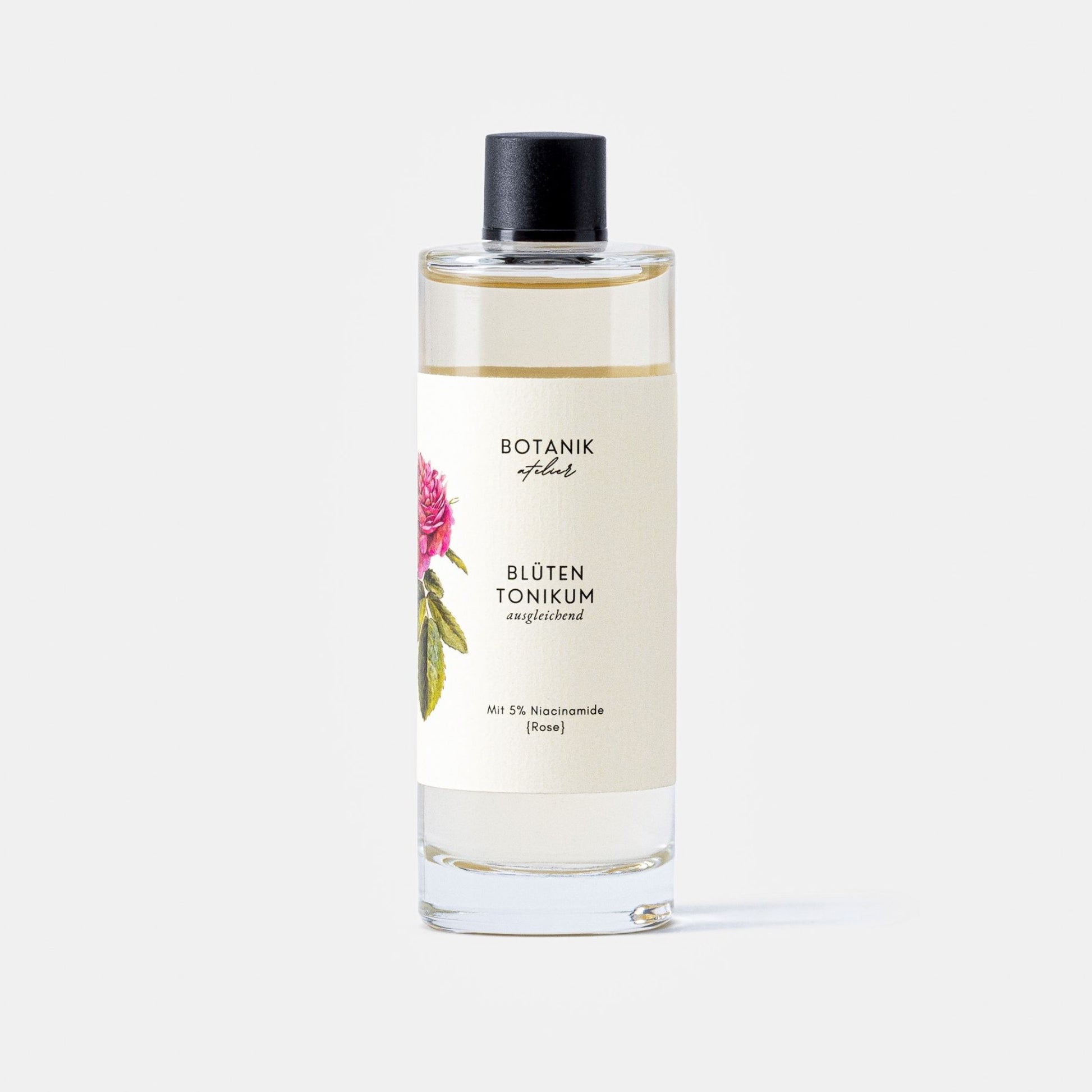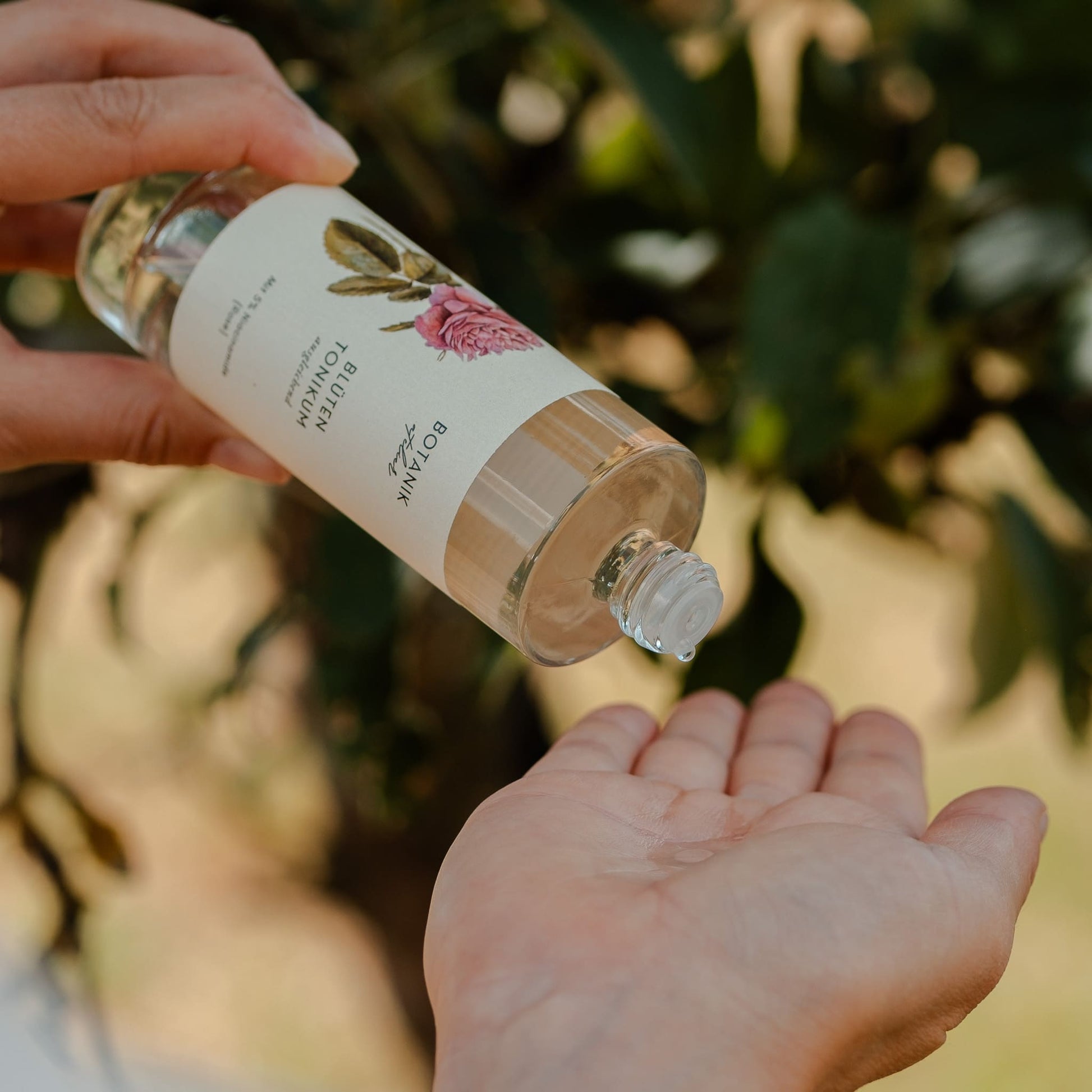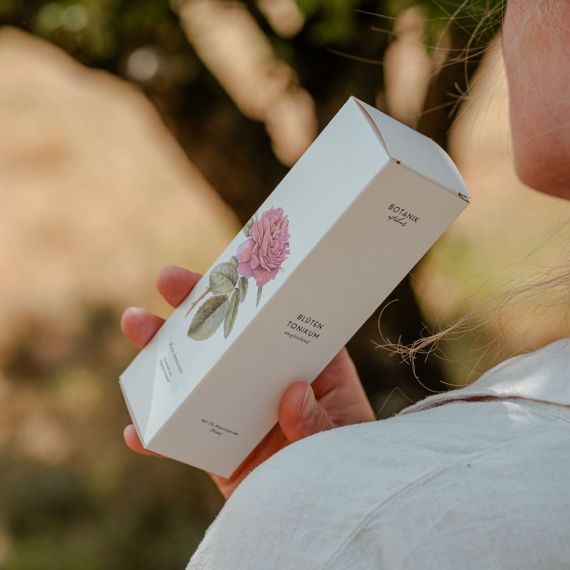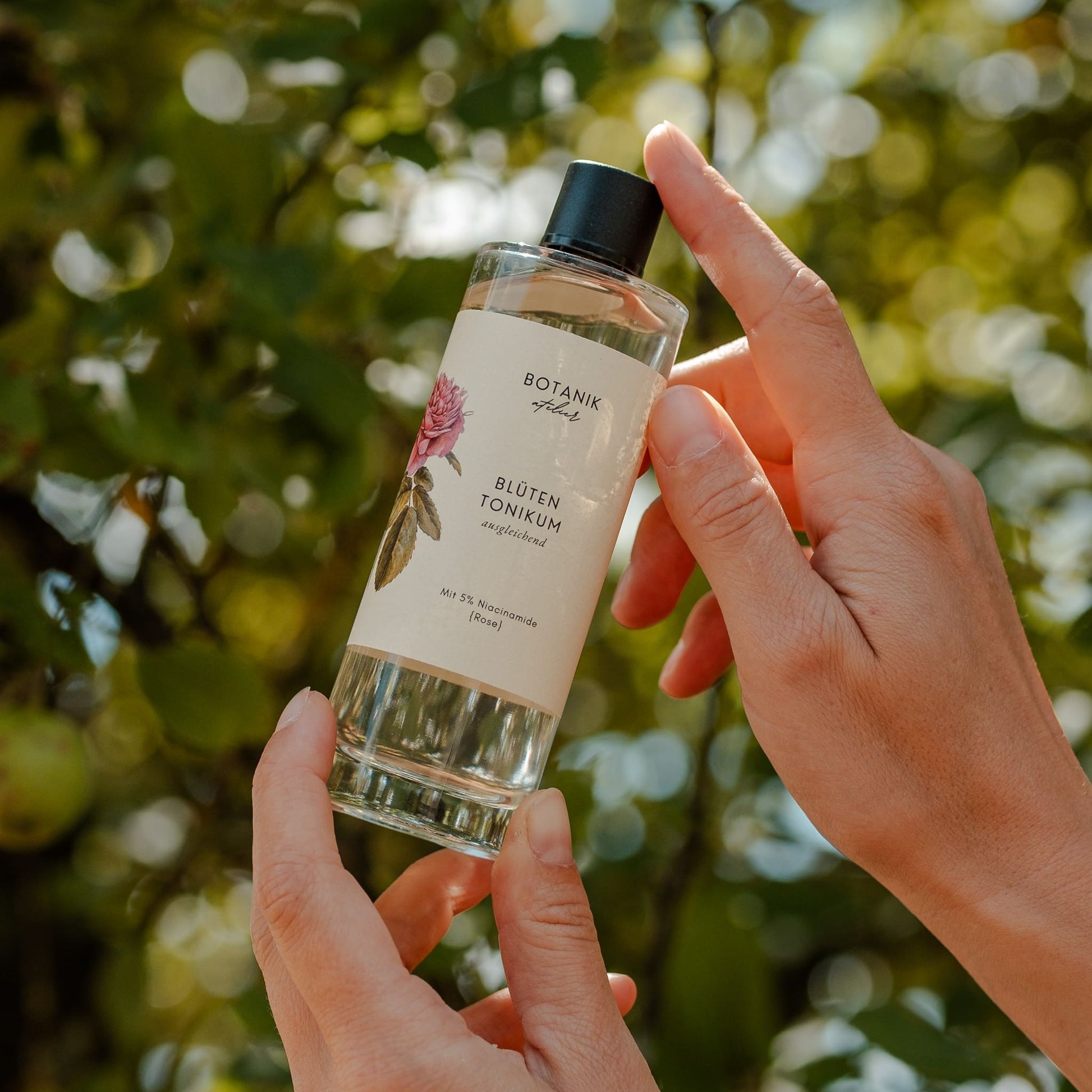 Das Blüten Tonikum ist für morgens und abends konzipiert. Nach der Reinigung aufgetragen erfrischt es müde Haut und bildet die ideale Feuchtigkeitsgrundlage für eine darauffolgende Pflege mit unserem pflanzlichem Gesichtsöl.