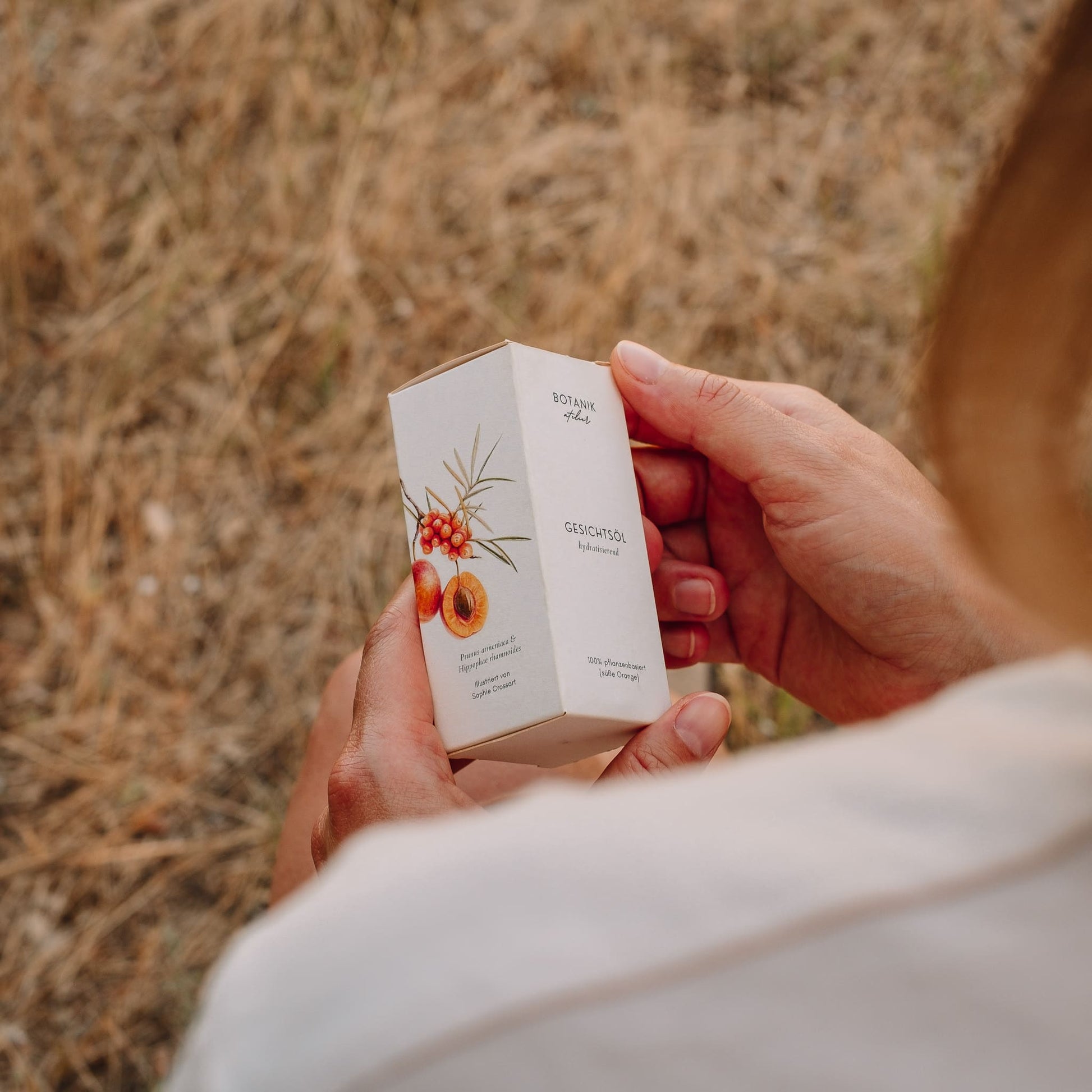 Das Gesichtsöl beinhaltet alles, was man in einem spätsommerlichen Obstgarten finden kann: kaltgepresste botanische Öle aus Aprikose, Distel und Pflaume - und feines Öl der Jojoba-Pflanze, bilden eine intensiv pflegende Basis.