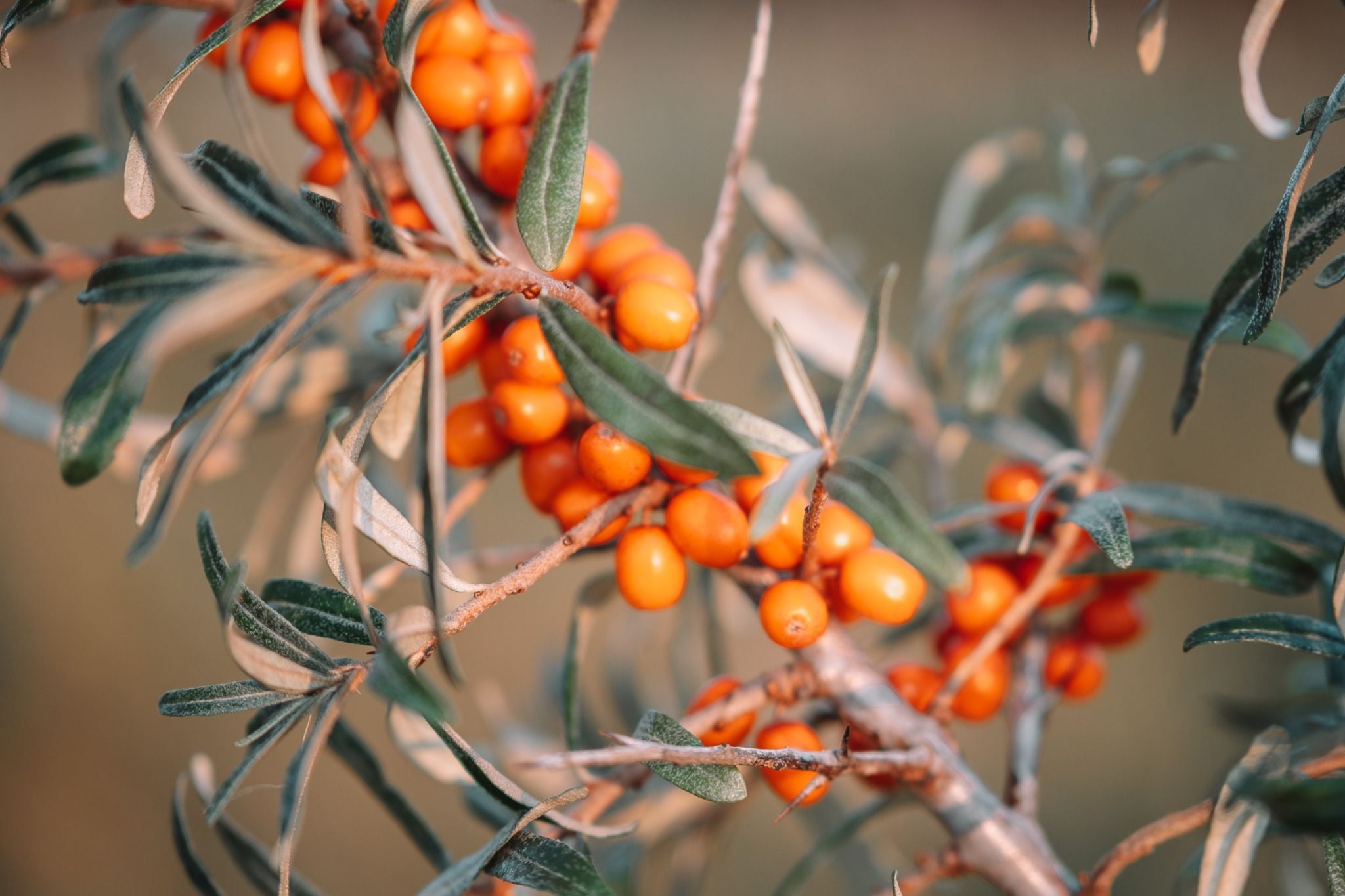Die orangene Farbe kommt von den Beta-Carotinen (Provitamin A), die im Sanddornfruchtfleischöl und Wildrosenöl enthalten sind. Beta-Carotine gehören zu den sekundären Pflanzenstoffen, die stark antioxidativ und zellerneuernd wirken und den Früchten zugleich den intensiv orange-rötlich leuchtenden Farbton verleihen.